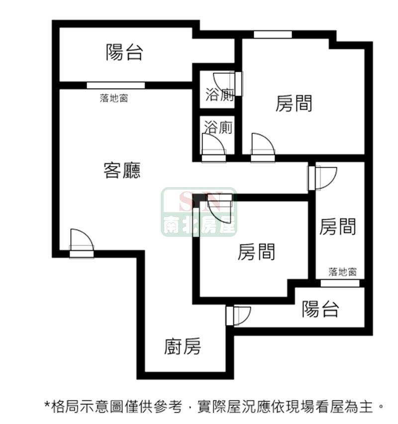 3房 2 廳 2 衛 2 陽