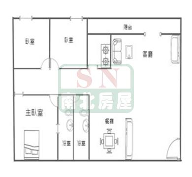 3房 2 廳 2 衛 1 陽