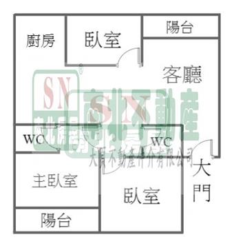 3房 2 廳 2 衛 2 陽