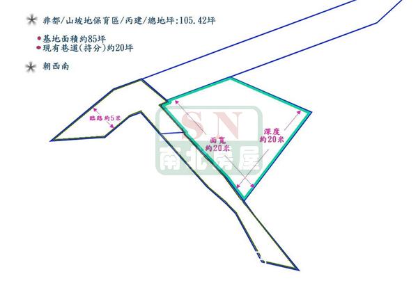山坡地保育區/丙建基地約85坪;現有巷道(持分)約20坪