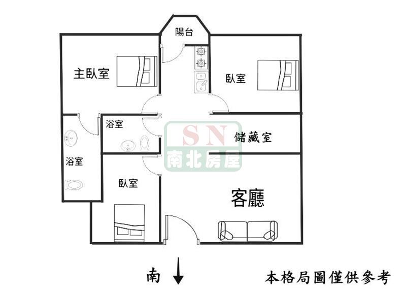 3房 2 廳 2 衛 1 陽