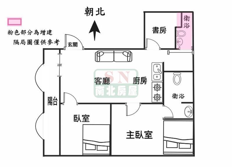 3房 1 廳 2 衛 1 陽