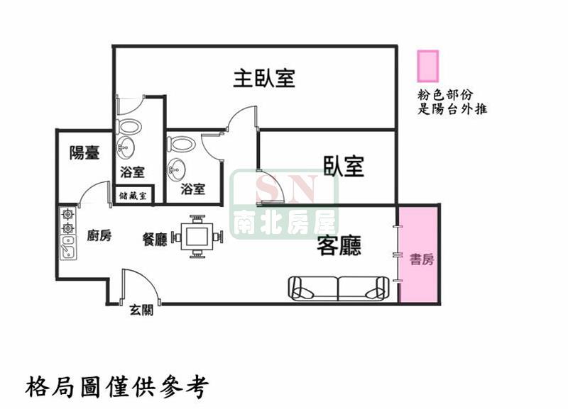 2房 2 廳 2 衛 1 陽